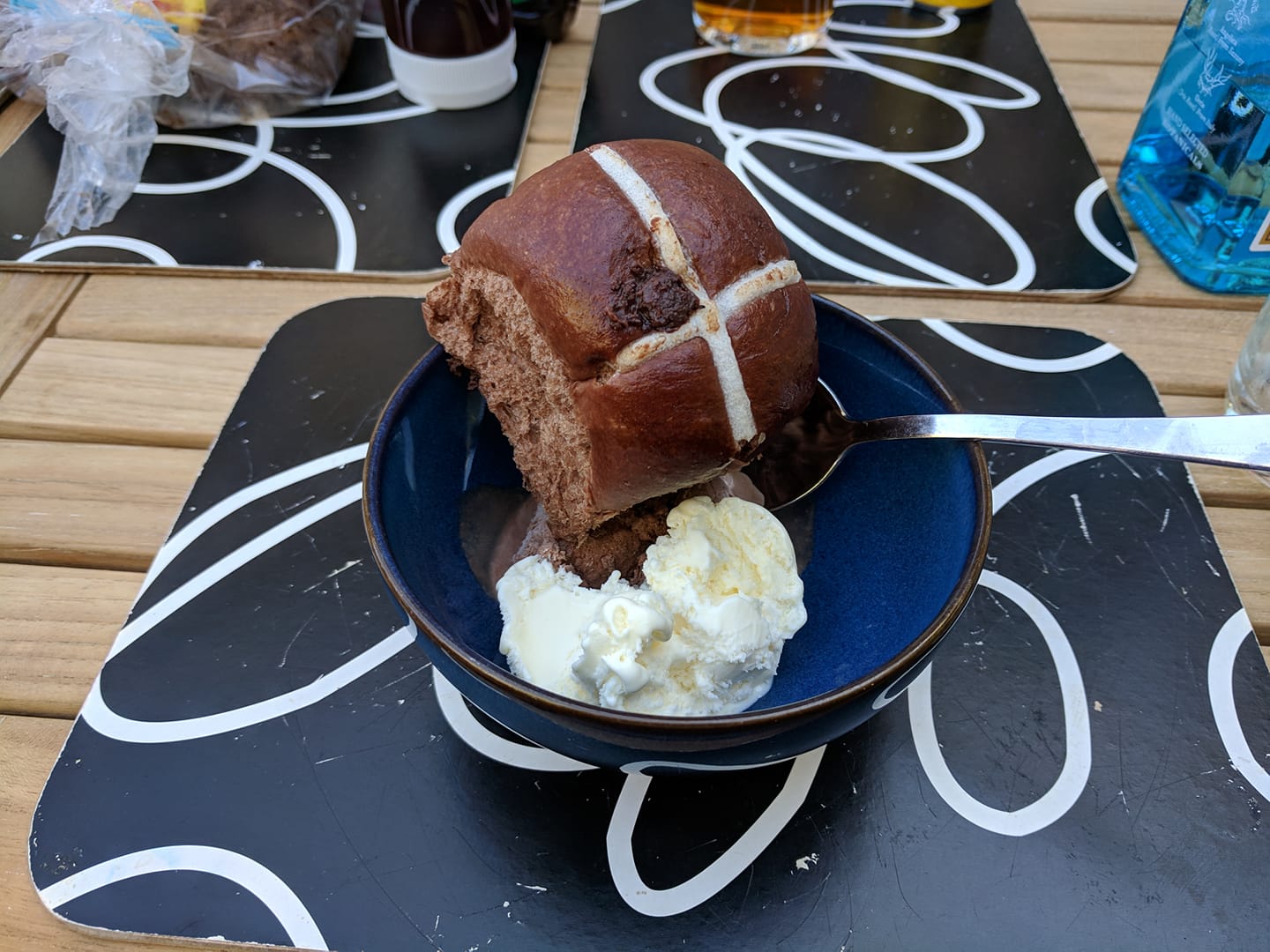 [3 March] Vanilla ice cream, chocolate ice cream, Hershey’s hot cross bun. Brother-in-laws new bbq and dinner with family makes for a good time. Hot cross bun makes for good ice cream bowl cleanup. 6/5 would spend time with family again.