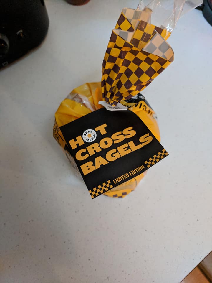 [10 April] These don’t deserve their own thread but I can’t put two photos in a comment on my other thread. They’re simply cinnamon and raisin bagels but someone spilt some flour and water mixture on them (in an organised way). Add a label on the bag tag and hey presto people message me about the hot cross bagels. They are nice though and only need a slathering of butter. 6/5 meh
